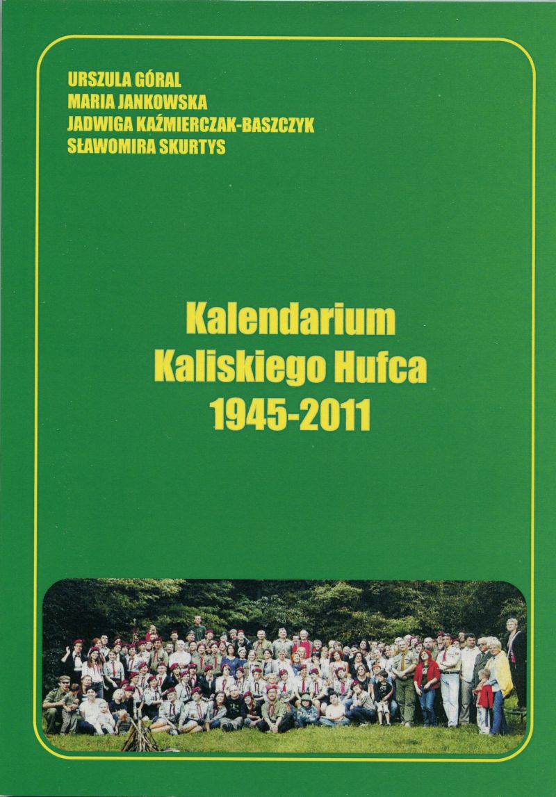 To wydawnictwo, które dokumentuje 70-letnią historię kaliskiego harcerstwa. Właśnie ukazało się "Kalendarium Kaliskiego Hufca 1945 - 2011". Pomysł wydawnictwa narodził się podczas zjazdu kaliskiego hufca, w październiku 2011 roku. Właśnie wtedy nowo wybrany komendant, phm Maciej Ciszewski poprosił seniorki o spisanie historii kaliskiego hufca. Pracy podjęły się cztery panie: hm Urszula Góral, hm Maria Jankowska, hm Jadwiga Kaźmierczak Baszczyk i hm Sławomira Skurtys. W ten sposób powstało kalendarium, które dokumentuje działalność kaliskiego harcerstwa po roku 1945. Wydawnictwo to część projektu pn. "Z historią w przyszłość", w ramach którego w październiku 2014 roku odbył się pierwszy w historii kaliskiego Hufca ZHP Zlot Starszyzny Harcerskiej i Seniorów. (źródło : www.wkaliszu.pl)