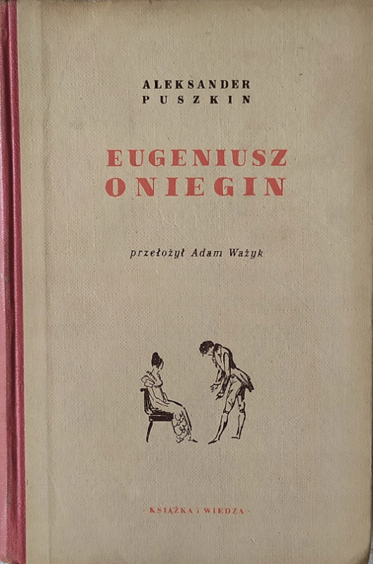 Eugeniusz Oniegin / Aleksander Puszkin ; przełożył Adam Ważyk. - Warszawa : "Książka i Wiedza", 1952. - 429, [6] stron, [10] kart tablic : ilustracje ; 21 cm.