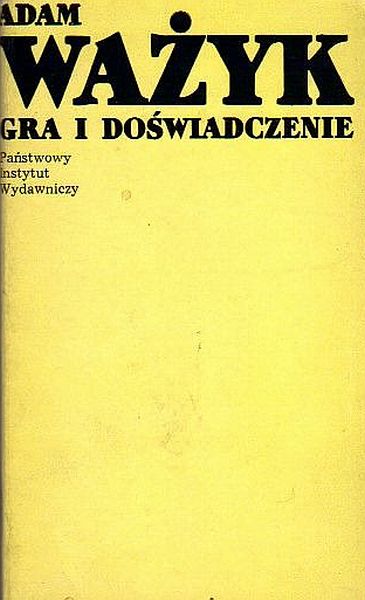 Gra i doświadczenie : eseje / Adam Ważyk. - Wydanie pierwsze. - Warszawa : Państwowy Instytut Wydawniczy, 1974. - 151, [5] stron ; 18 cm.