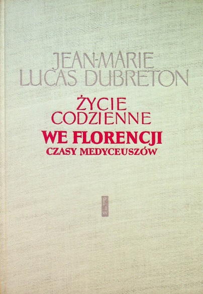 Życie codzienne we Florencji : czasy Medyceuszów / Jean-Marie Lucas Dubreton ; przełożyła Eligia Bąkowska. - Wydanie pierwsze. - Warszawa : Państwowy Instytut Wydawniczy, 1961. - 260, [4] strony, [32] strony tablic : ilustracje ; 25 cm.