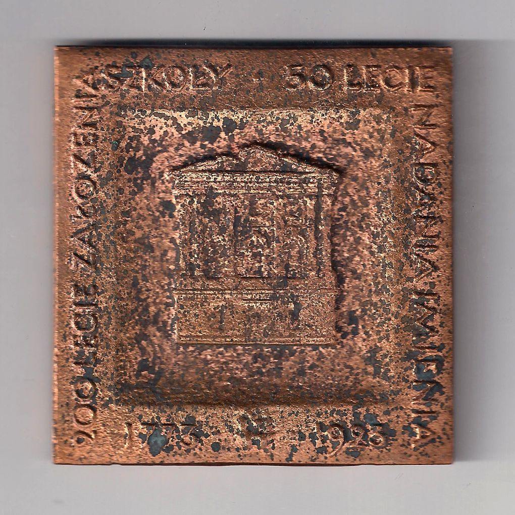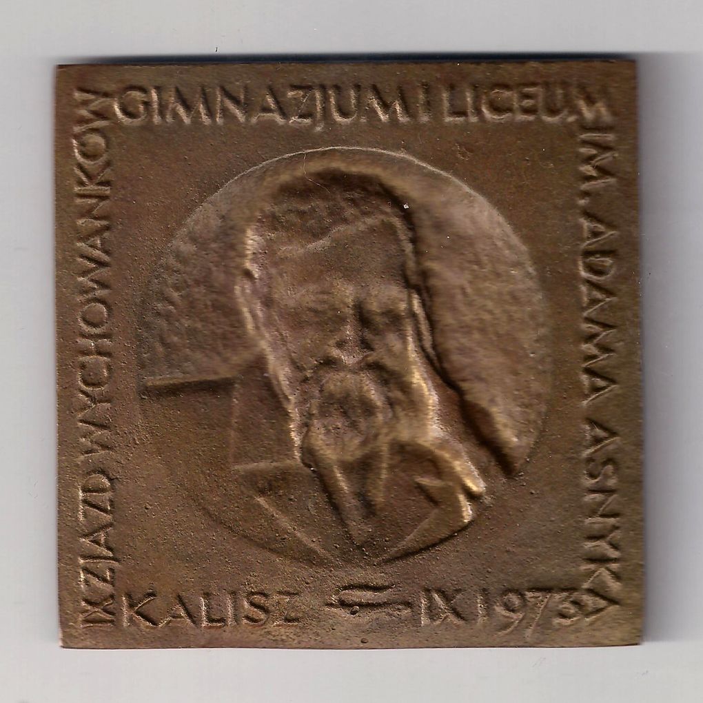 Awers: Kształt kwadratowy, pośrodku w kole popiersie A. Asnyka oraz w otoku napis: "IX ZJAZD WCHOWANKÓW GIMNAZJUM I LICEUM IM. ADAMA ASNYKA - znicz - IX.1973" -