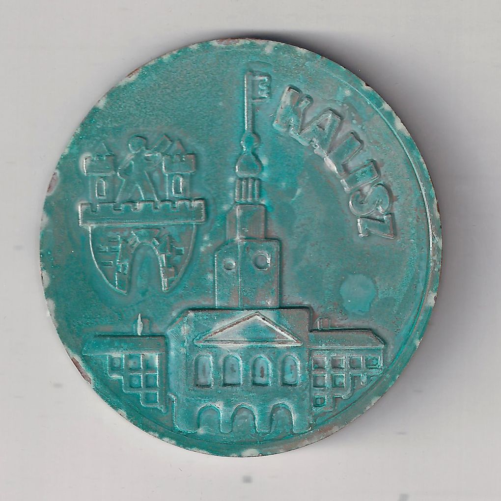Rewers: Od dołu stylizowany Ratusz z wieżą sięgającą górnej krawędzi medalu. Z lewej strony wieży herb m. Kalisza, z prawej napis: "KALISZ".