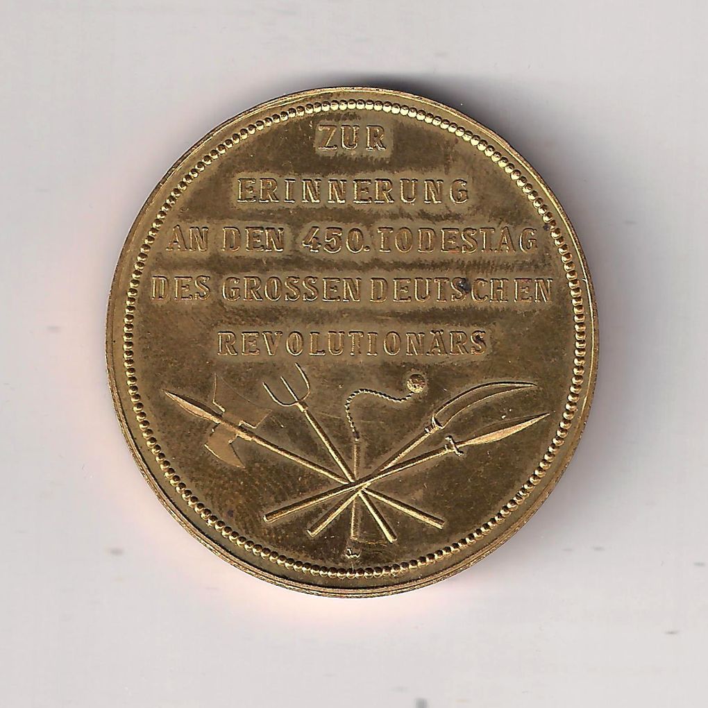 Rewers: Napis: Zur Erinnerung An Den 450. Todestag Des Grossen Deutschen Revolutionars