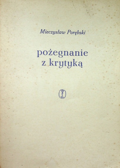 Pożegnanie z krytyką / Mieczysław Porębski. - Wydanie 1. - Kraków : Wydawnictwo Literackie, 1966. - 259, [1] strona : faksymilia, fotografie, portrety ; 24 cm.