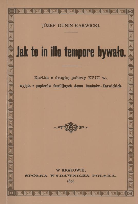 Repr., oryg.: Jak to in illo tempore bywało : kartka z drugiej połowy XVIII w., wyjęta z papierów familijnych domu Duninów-Karwickich. Kraków : Spółka Wydawnicza Polska, 1896.