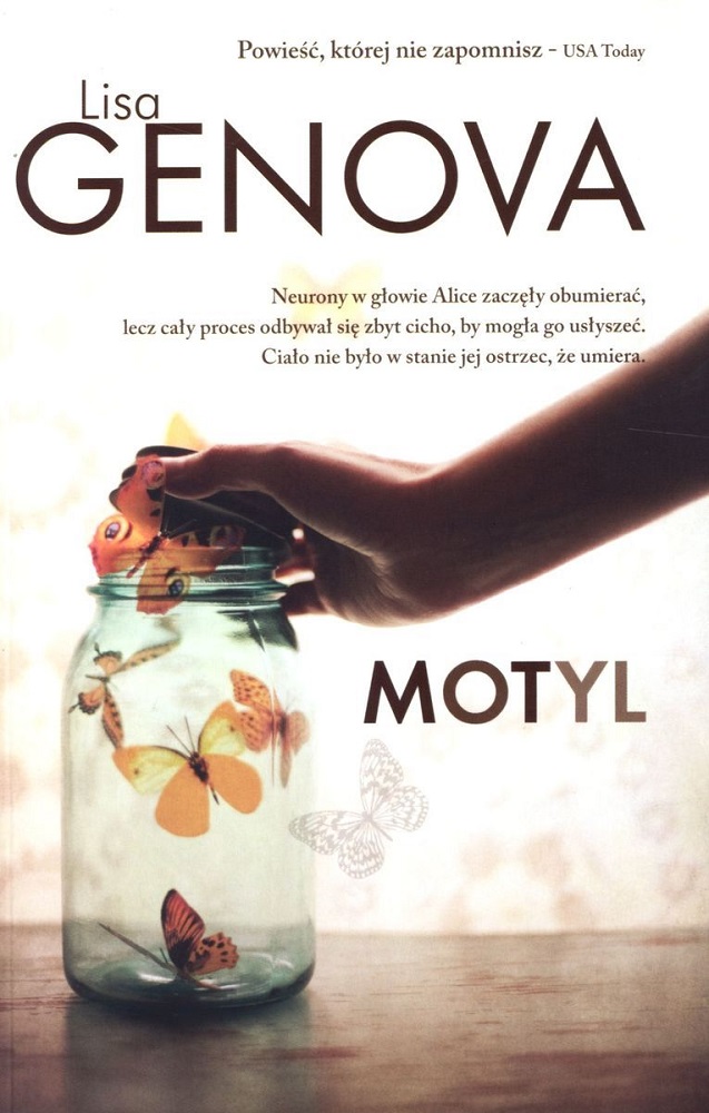 Neurony w głowie Alice zaczęły obumierać, lecz cały proces odbywał się zbyt cicho, by mogła go usłyszeć. Jej ciało nie było w stanie jej ostrzec, że umiera. Motyl to jedna z najpiękniejszych powieści ostatnich lat. Alice Howland zaczyna tracić pamięć. Lekarze kładą to na karb zmęczenia i stresu. Ale mylą się. Alice jest profesorem Harvardu, uprawia jogging i korzysta z życia, jest spełnioną kobietą. Diagnoza, Alzheimer o wczesnym początku, jest dla niej wyrokiem. Kobieta musi pogodzić się z tym, że niebawem straci swoją tożsamość. Zapomni kim jest, co kocha, a czego nienawidzi. Przestanie poznawać swoje dzieci. Próbuje się przed tym bronić tworząc w swoim komputerze, niczym dodatkowy dysk pamięci, specjalny folder o nazwie: MOTYL...
