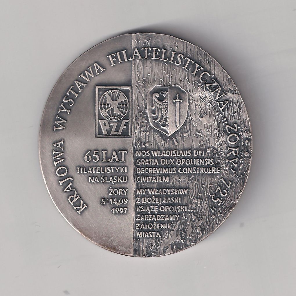 Krajowa wystawa filatelistyczna "Żory' 725"- medal. - [B.m.] : [b.w.], [1997]. - 1szt. ; średnica 70 mm.