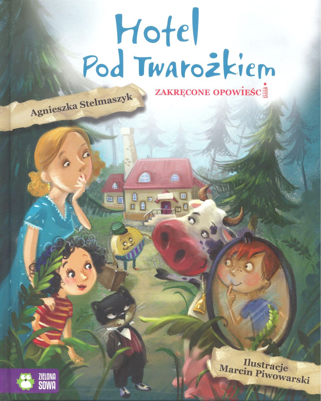Seria Zakręcone opowieści to książki do wspólnego, rodzinnego czytania dla dzieci 4-6-letnich. Zawiera zabawne, nieco zakręcone historie, napisane przez znanych autorów i zilustrowane przez ilustratorów dziecięcych. Hotel pod Twarożkiem to zwariowana opowieść autorstwa Agnieszki Stelmaszyk, twórczyni bestsellerowej serii „Kroniki Archeo”. Podczas podróży mazurskimi drogami mama z córką Zuzanką łapią gumę gdzieś na pustkowiu. Tak trafiają do niezwykłego hotelu, który prowadzi… krowa Szarlotta, a boyem hotelowym jest ser Edek Edamski. Zuzanka zaprzyjaźnia się z kotem Tycjanem, który oprowadza ją po tym niezwykłym hotelu i poznaje z kolejnymi, równie zaskakującymi, bohaterami.