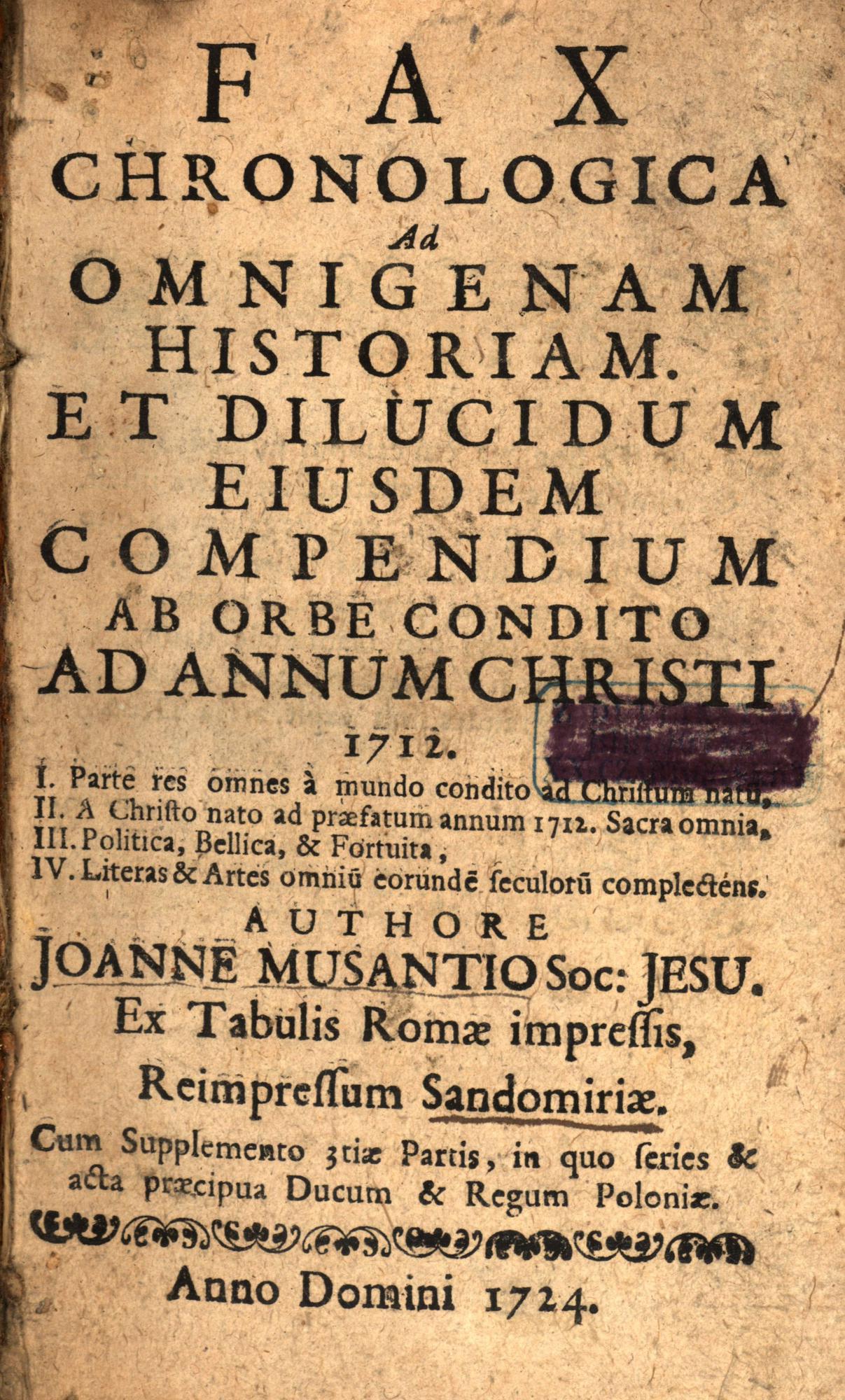 Fax Chronologica Ad Omnigenam. - Sandomiae : [B.w.], 1724. - [16], 354 s. ; 16 cm.