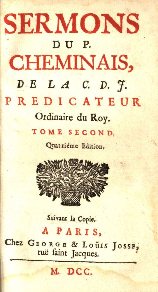 Sermon sur la passion dominante. - Paris : Chez George & Loüis Josse, 1700. - 252, 291, [1], 275, [1] s. 15 cm.