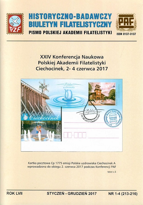 (Historyczno-Badawczy Biuletyn Filatelistyczny / red. nacz. Tadeusz Hampel ISSN 0137-3137 ; R.56 2016 nr 1-4)