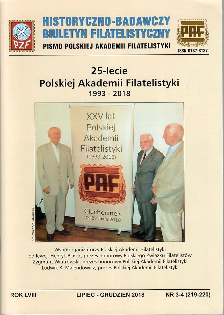 (Historyczno-Badawczy Biuletyn Filatelistyczny / red. nacz. Tadeusz Hampel ISSN 0137-3137 ; R.58 2018 nr 1-4)