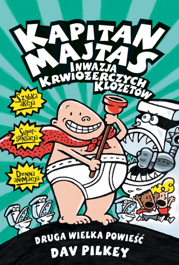 George i Harold to bardzo odpowiedzialni chłopcy. Gdy tylko w szkole wybucha jakaś afera, zazwyczaj właśnie oni ponoszą za to odpowiedzialność. A teraz znowu wymyślili kolejne psikusy! Najpierw kilkoma głupimi kawałami popsuli szkolny turniej wynalazców, a potem przez przypadek stworzyli armię straszliwych Krwiożerczych Klozetów, które zamierzały zapanować nad światem. Czy ktoś powstrzyma te mięsożerne porcelanowe miski? Oto kolejne wyzwanie dla Kapitana Majtasa. [empik.com]