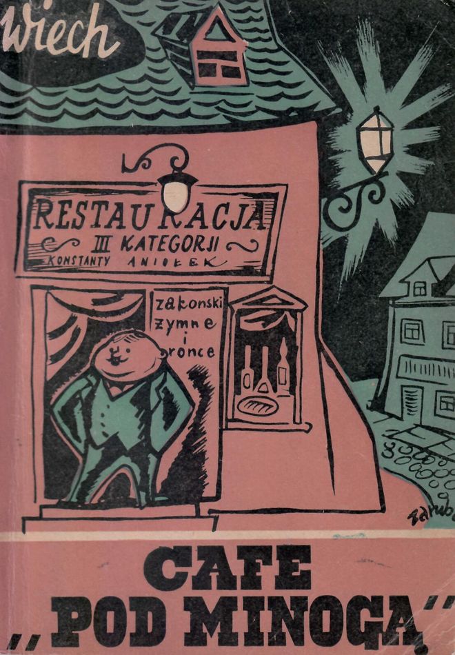 Cafe "Pod Minogą" / Wiech ; [ilustracje Jerzego Zaruby]. - Warszawa : Iskry, 1957. - 198, [2] strony : ilustracje ; 21 cm.