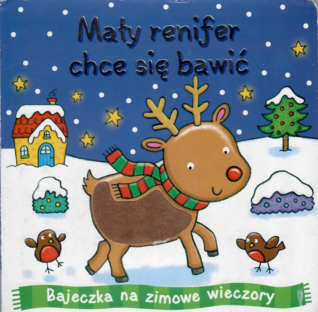 Książeczka z serii książeczek sztywnostronicowych o tematyce świątecznej. Dodatkową atrakcją jest dotykowy element na okładce (brzuszek bałwanka i renifera, fragment sań, choinka). Miłe bajeczki, które umilą zimowe wieczory. [nota wydawcy]