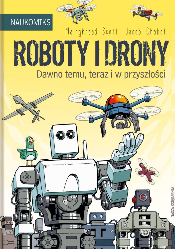 Przygotuj się do badania głębin oceanów, dalekiego kosmosu i wszystkiego po drodze! Wybuchy wulkanów, nietoperze wampiry, upierzone welociraptory i dużo więcej czeka na ciebie w NAUKOMIKSACH! Roboty są wszędzie: w fabrykach, samochodach, telefonach i w powietrzu. Nawet w naszych domach! Na dodatek powstały dużo wcześniej, niż ci się wydaje! Towarzyszą ludziom, pomagają im i ochraniają ich od wieków. Od maszyn serwujących herbatę w feudalnej Japonii po współczesne łaziki badające powierzchnię Marsa. Mechaniczny ptak Pouli, jeden z najstarszych robotów, odkryje przed wami wiele interesujących faktów: skąd się wzięły roboty, jak działają i co robią w tej niezwykłej książce! [nota wydawcy]