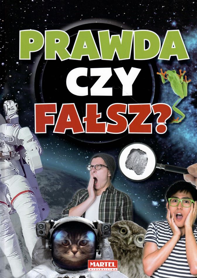 "Prawda czy fałsz?" jest zaproszeniem do wspólnej zabawy i świetną lekturą dla całej rodziny. Świat, w którym żyjemy, pełen jest zaskakujących i intrygujących zjawisk z których często nie zdajemy sobie sprawy. Dowiemy się czy prawdą jest, że ziewanie jest zaraźliwe, czym czujemy zapach z zatkanym nosem? Czy to możliwe, że nietoperze naprawdę piją krew, ryby mogą latać, a szyja człowieka nie różni się liczbą kręgów od szyi żyrafy? Znajdziemy informacje o Ziemi i poza nią. Czy w Europie istnieją jeszcze plemiona wędrowne i czy z kosmosu naprawdę widać Wielki Mur Chiński? Lektura przyniesie przyjemne chwile relaksu. Będzie doskonałym uzupełnieniem wiedzy dla najmłodszych i świetną rozrywką dla starszych. [nota wydawcy]