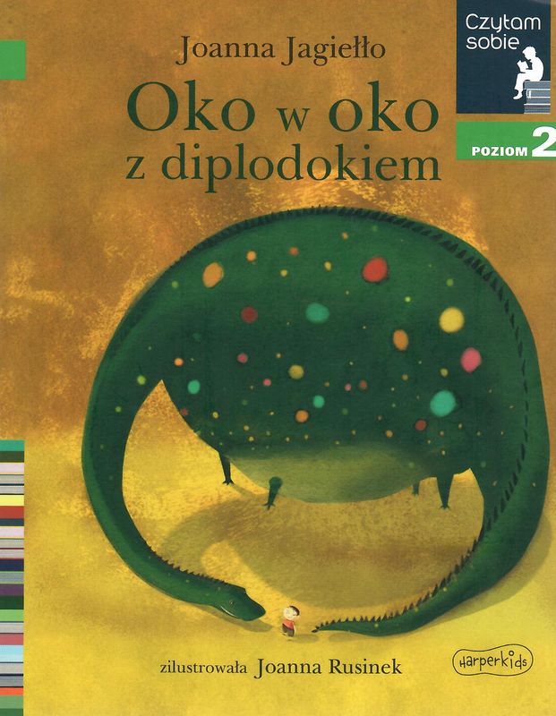 Oko w oko z diplodokiem / Joanna Jagiełło ; zilustrowała Joanna Rusinek. - Warszawa : Harperkids, Copyright 2021. - 47, [1] strona, [1] karta tablic : ilustracje kolorowe ; 19 cm.