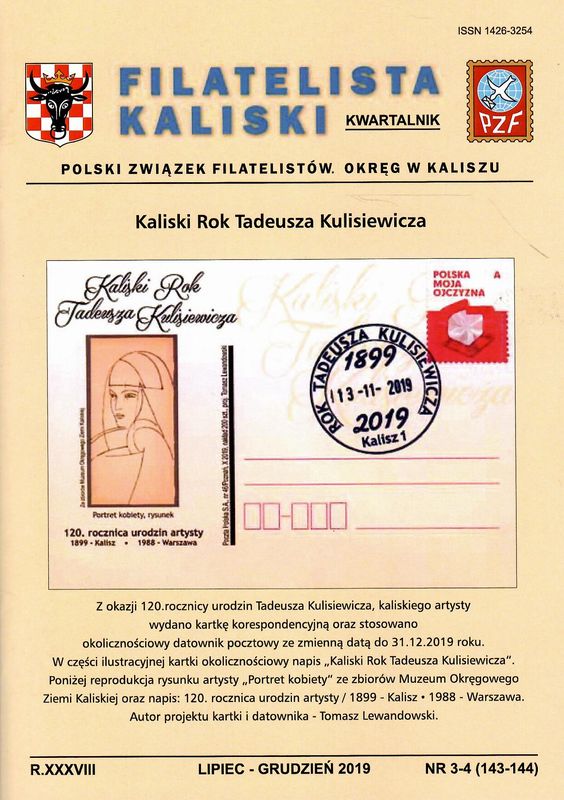 (Filatelista Kaliski. Kwartalnik / red. nacz. Jerzy Bielawski ; Polski Związek Filatelistów. Okręg w Kaliszu ISSN 1426-3254 ; 2019 nr 1-2 (141-142), nr 3-4 (143-144))