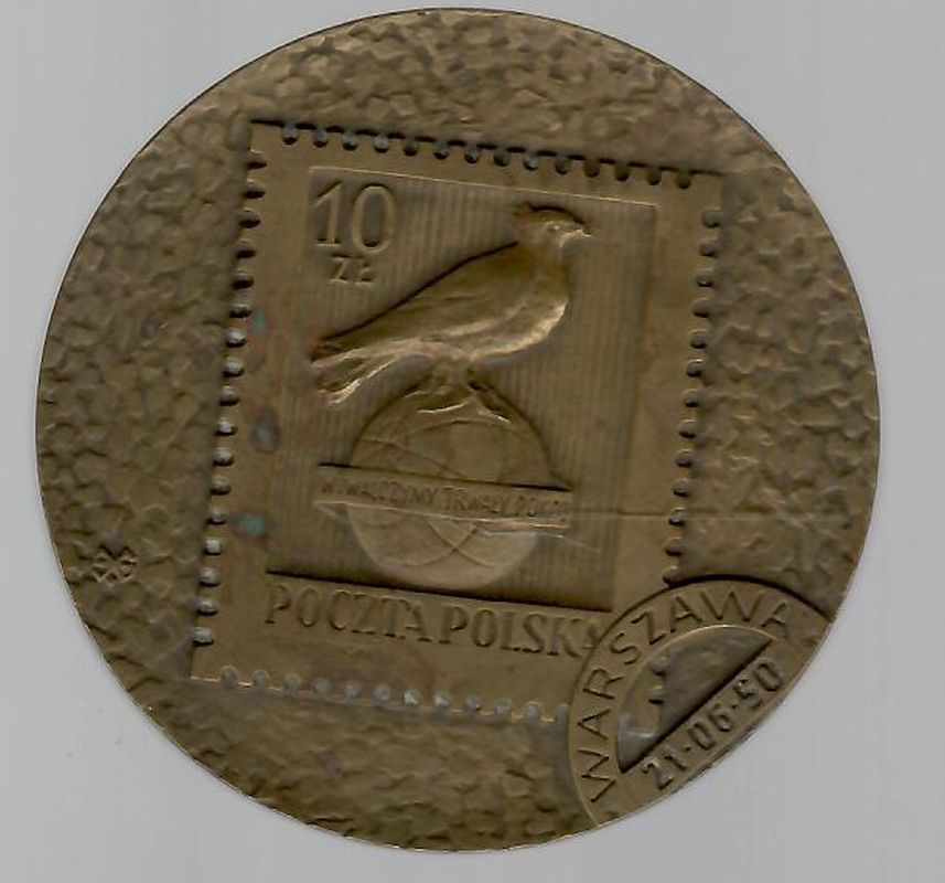 Awers: Napis: "Warszawa 21.06.50" oraz przedstawienie znaczka pocztowego o wartości 10 zł.
