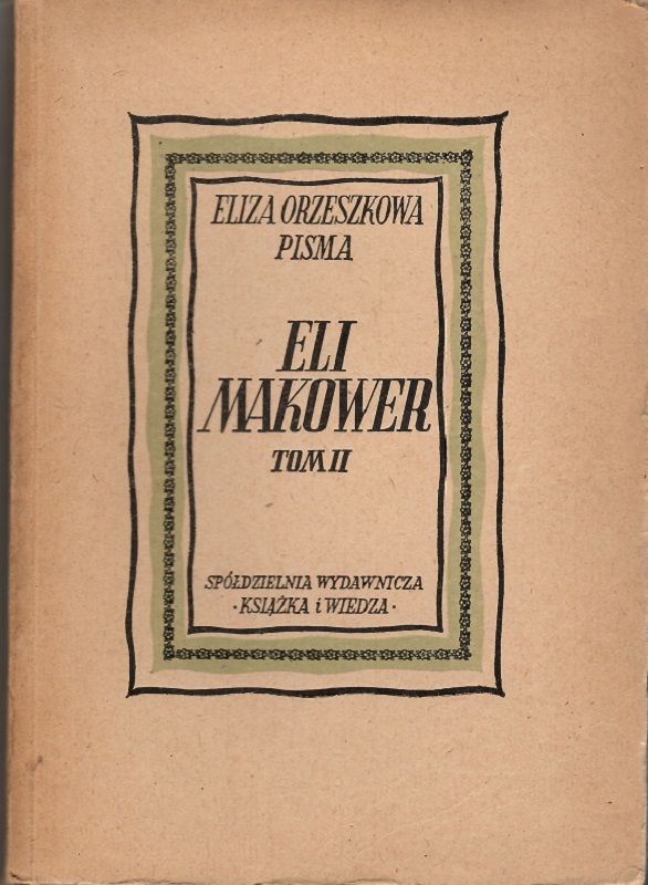 Eli Makower ; Tom II / Eliza Orzeszkowa. - Warszawa : Książka i Wiedza, 1950. - 377, [2] strony ; 21 cm.