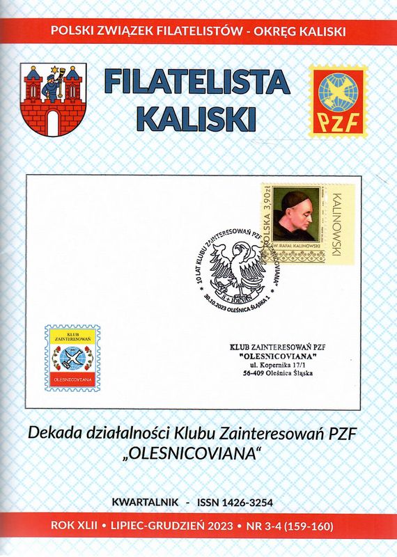 (Filatelista Kaliski. Kwartalnik / red. nacz. Adam Szuler ; Polski Związek Filatelistów. Okręg w Kaliszu ISSN 1426-3254 ; 2023 nr 1-4 (157-160))