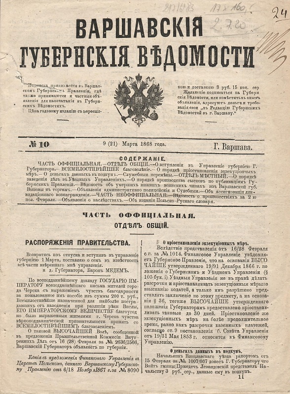 Varšavskiâ Gubernskiâ Vědomosti. - Varšava : G. Varšava, 1868-1915. - 30 cm.