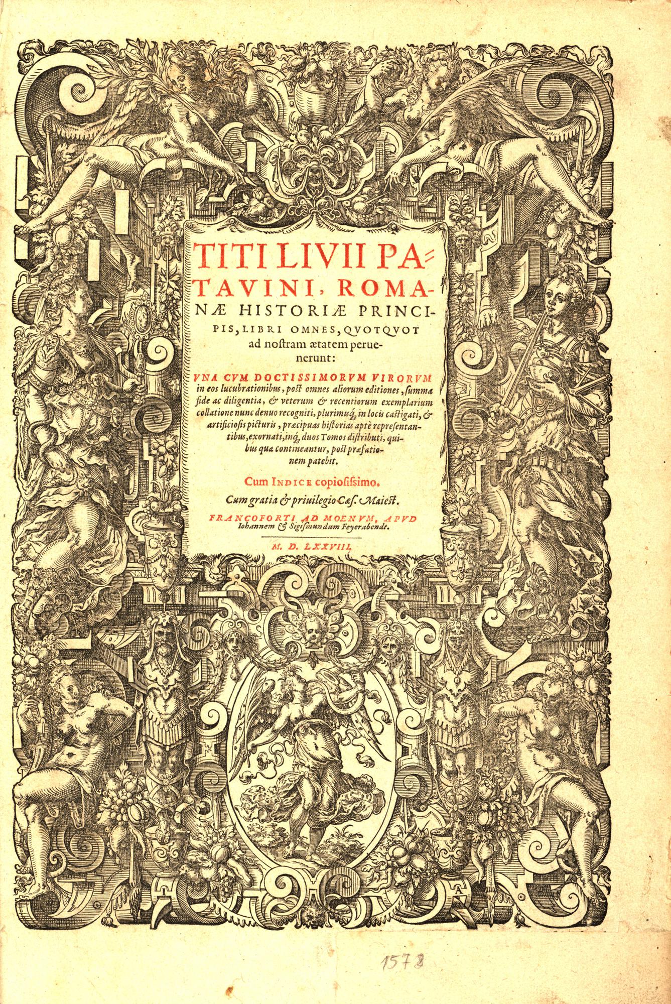 Współwyd. z osobnymi k. tyt.: Chronologia In Titi Livii Historiam, In Titi Livii Patavini Historiarvm [...] Libros [...] Observationes [...], Caroli Sigonii Scholia [...].