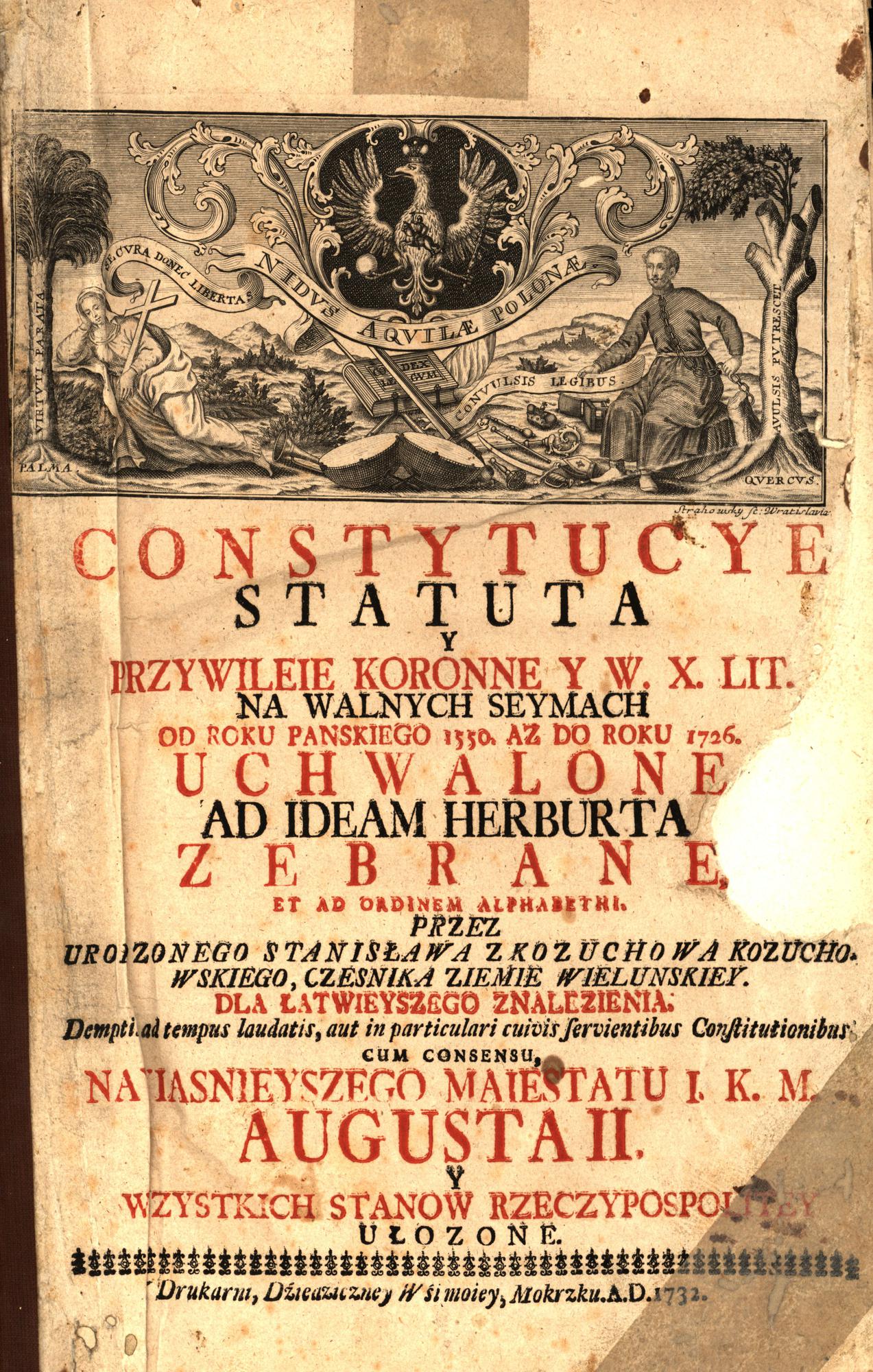 Konstytucje wydał Stanisław Kożuchowski własnym sumptem w prywatnej drukarni w Mokrsku.