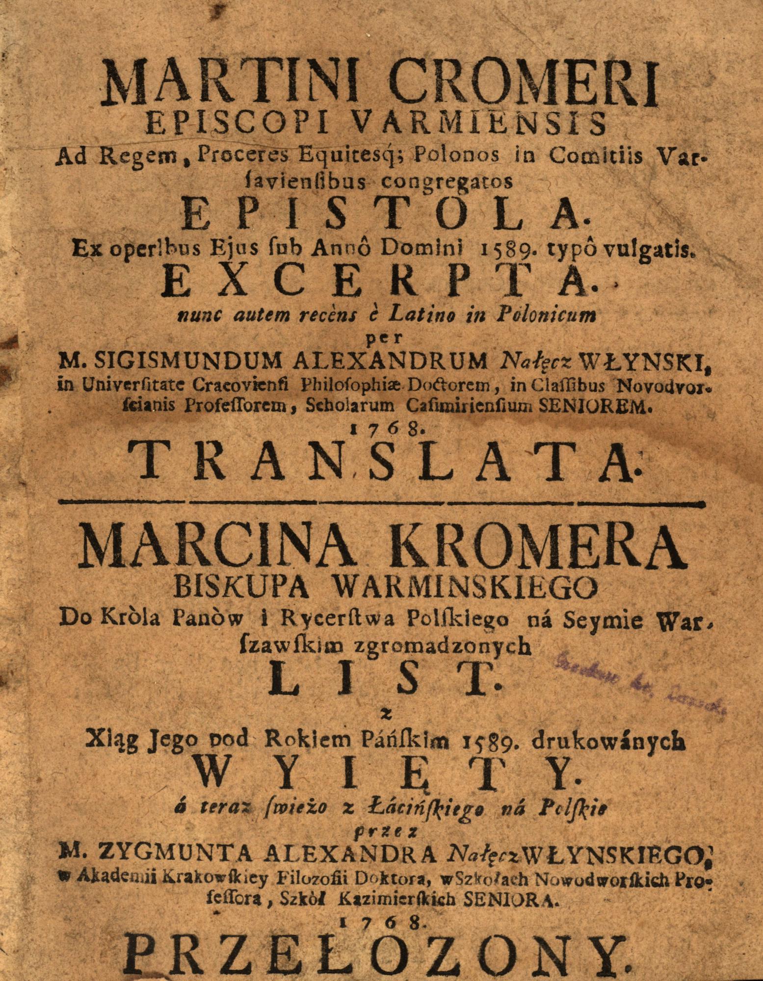 Tyt. i tekst równolegle po łac. i w jęz. pol.