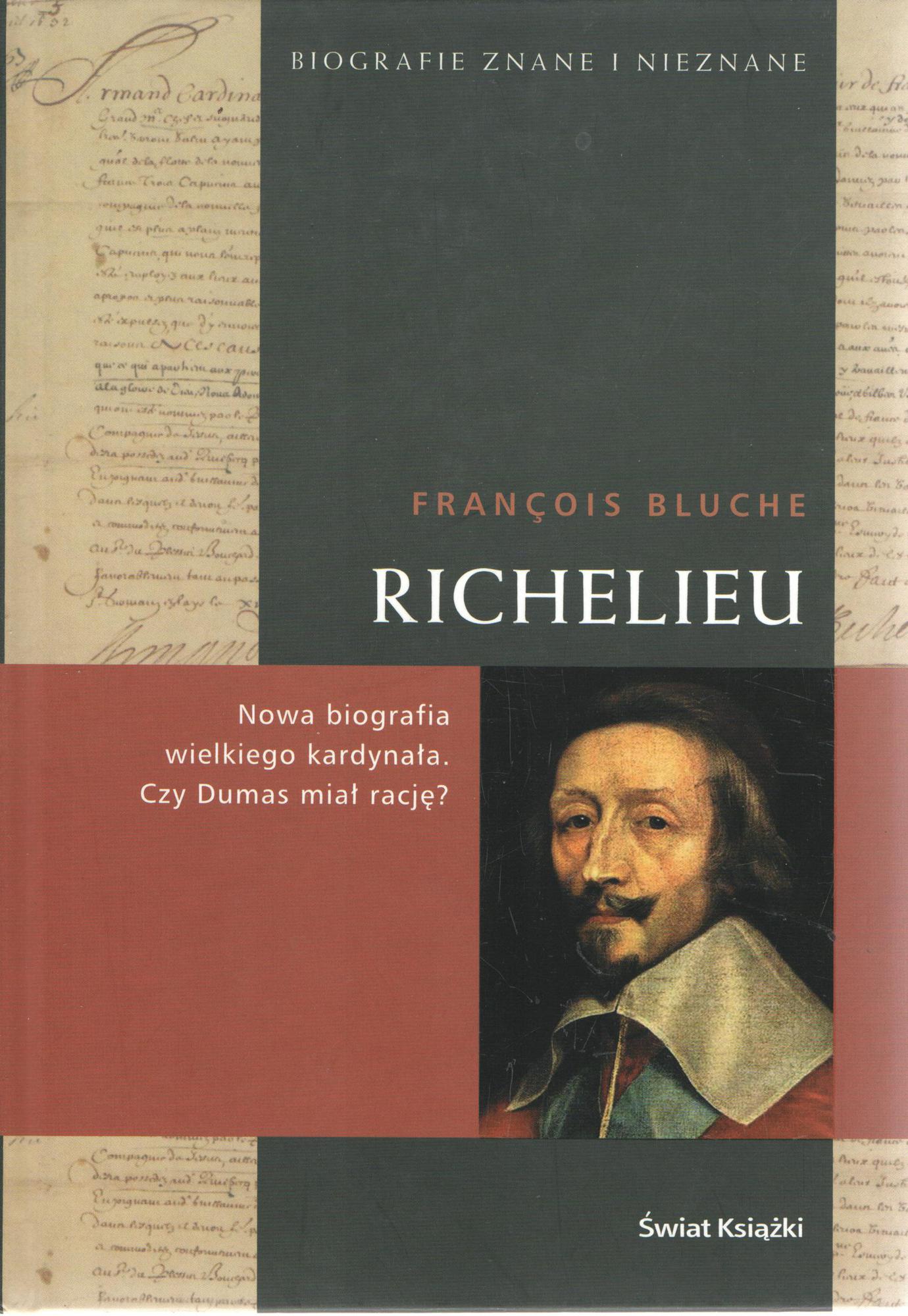 Czy Dumas miał rację? Czy naprawdę wiemy jaki był kardynał Richelieu, jeden z twórców wielkości Francji? Wspominamy go jako "człowieka w czerwieni", postać bezwzględną, podstępną i okrutną - tak jak opisywał go Dumas w "Trzech Muszkieterach". Przypisuje mu się pokonanie La Rochelle (słusznie) i wywalczenie naturalnych granic państwa (niesłusznie). Przypisuje mu się też zwycięstwo nad Domem Austrii (co jest prawdą) i cyniczny kult racji stanu (co prawdą nie jest). Książka Francois'a Bluche'a pozwala na zobaczenie postaci mniej przerażającej niż jej własna legenda, choć nie zawsze wzbudzającej zaufanie, niepozbawionej cech ludzkich, a nawet poczucia humoru. Założyciel Akademii Francuskiej to nie tylko bezlitosny polityk.