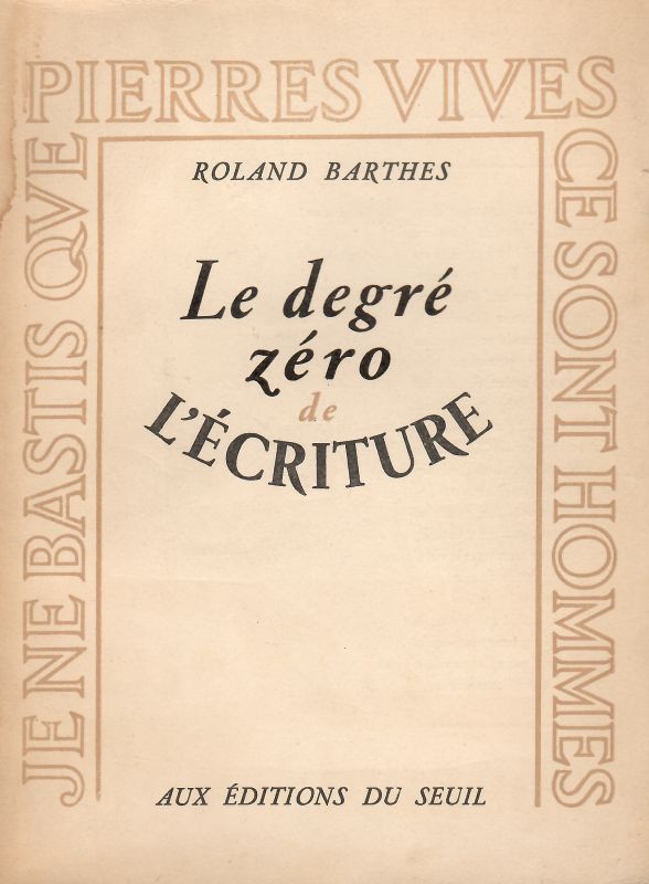 Le degré zéro de l'écriture / Roland Barthes. - Paris : Éditions du Seuil, Copyright 1953. - 125, [2] strony ; 19 cm.