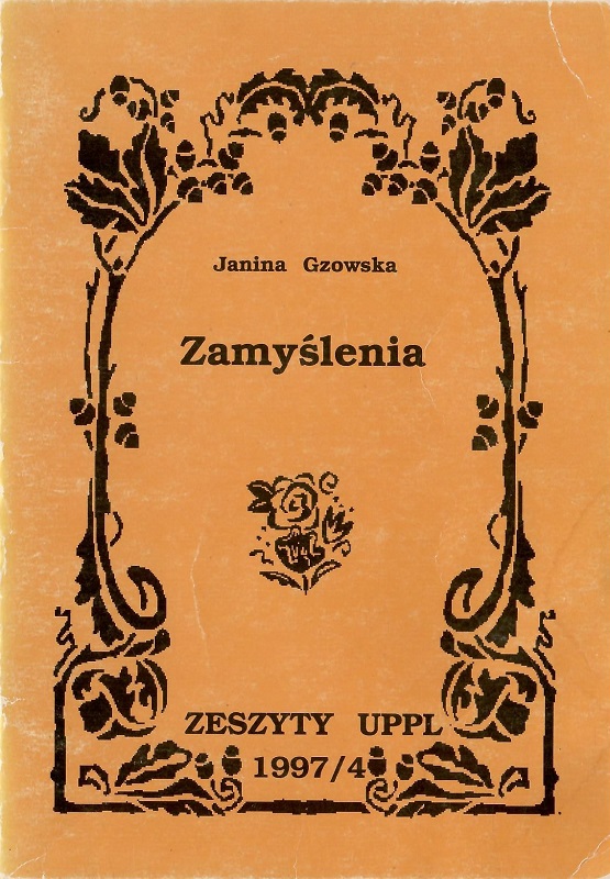 Zamyślenia / Janina Gzowska. - [Łódź] : Unia Polskich Pisarzy Lekarzy, [1997]. - 41, [3] strony : portret ; 21 cm.